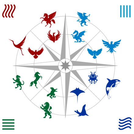 Zodian has created element types ( earth, water, fire and air) and animal archetypes that symbolically represent quadrant and type preferences. These archetypes are assigned heraldry icons and shields.
